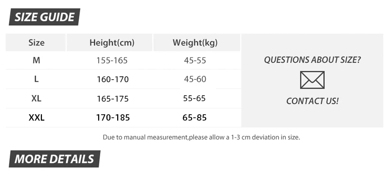 2. If you don’t know how to choose the size, please check the size chart carefully before you buy the item, please contact our customer service.
