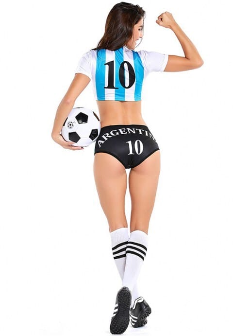 Everyone will be inspired by Argentina National Team when you wear this sexy midriff baring two piece costume